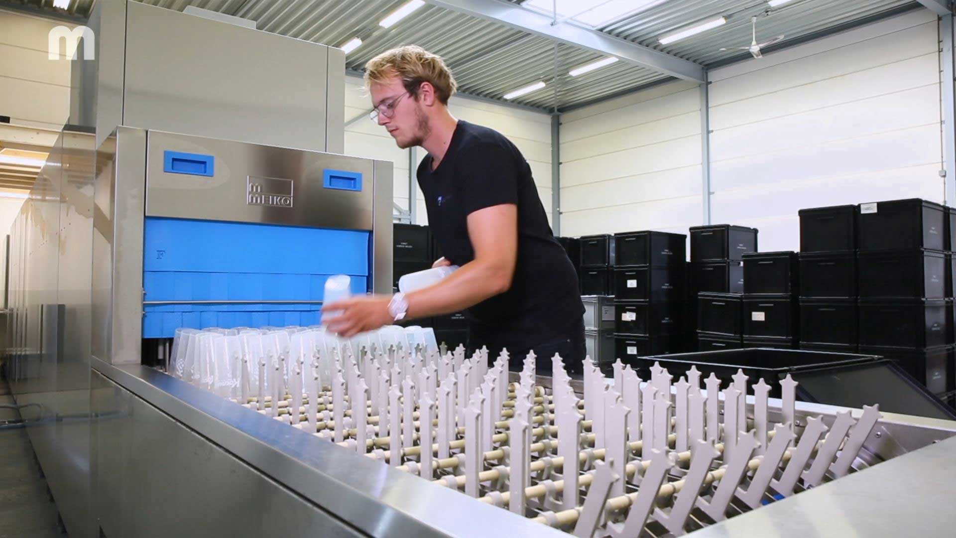 Sixteen bottles can be cleaned per wash cycle. And in the blink of an eye thanks to the short programme cycle time of the M-iClean U undercounter dishwasher.