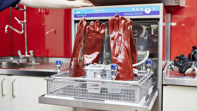 Working by hand is not to be underestimated – but it's not the best option for cleaning respirator masks or regulators. The right machine will clean better, faster and more economically. That's possible with MEIKO.