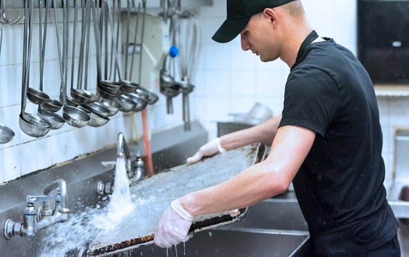 It is interesting to note, however, that the majority of problems in commercial kitchens do not start at the cooker since, generally, several cooking areas are available, meaning the risk of everything failing is minimal. The dishwashing area, though, can often be a critical point. Sometimes plates, glasses and cutlery don't come out properly clean, sometimes the dishwashing machine simply stops working and sometimes it doesn't mesh properly in the system with the staff. Food-service businesses also suffer a disproportionately high incidence of absence, for which there are several reasons. One such reason might be the significant physical and mental strain of peak times, another that ergonomics was not properly considered when buying kitchen and dishwashing appliances.