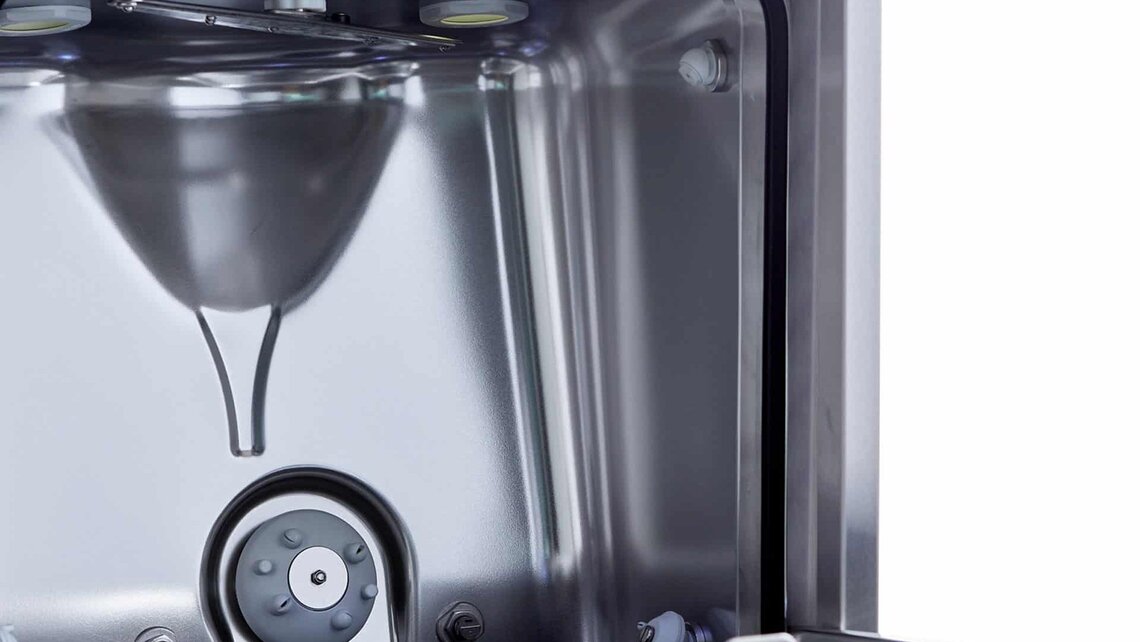 MEIKO has fully overhauled the cleaning system resulting in higher pressure, perfectly shaped and positioned nozzles, and an optimised wash chamber. An additional wash arm on the ceiling helps with exterior cleaning, while interior lighting in the wash chamber helps out the care staff.
