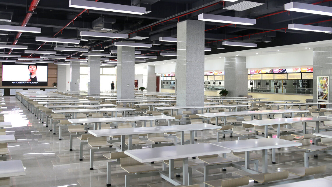 长安校区的餐饮楼共有四层,提供各具特色的餐饮。其中,一楼为职工和学生餐厅,可容纳3000人用餐;二楼为特色餐厅,可容纳2000人用餐;三楼和四楼则是风味餐厅和西餐厅,可容纳1000人用餐。