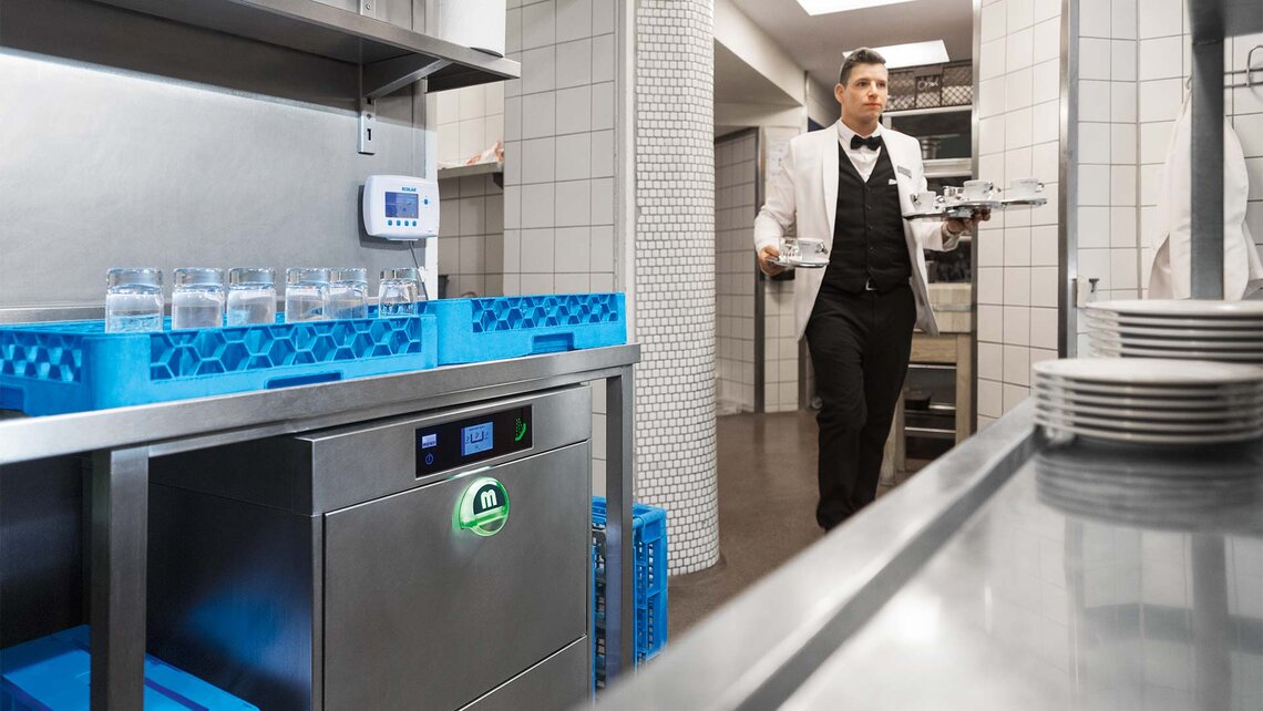 像Querfeld一样经营一家餐厅,一流的餐具清洗技术对其而言尤为重要。“负责清洗餐具的员工多次将我们从糟糕的境地拯救出来。这是整个过程的源头。洗碗机似乎是一面镜子一样反映出烹饪的美学。“餐具清洗技术必须提供始终如一的可靠性能。不能出现运行停顿。一旦出现问题,服务团队会立刻赶来解决问题。“即使在周日晚上9点,MEIKO也义不容辞“,Querfeld说道。他熟知餐具清洁技术,并曾在Baden-Württemberg任职15年。在餐具清洗技术方面,无论涉及能源、水资源和化学品消耗,还是工作条件、室内环境,Querfeld都有许多专业见解。而作为咖啡文化经营者,他还要考虑更多:“我们需要值得信赖的合作伙伴,能遵循我们的价值:可靠、高品质、一致性和耐用性。”这是维也纳Café Landtmannk咖啡馆始终秉承的信念。