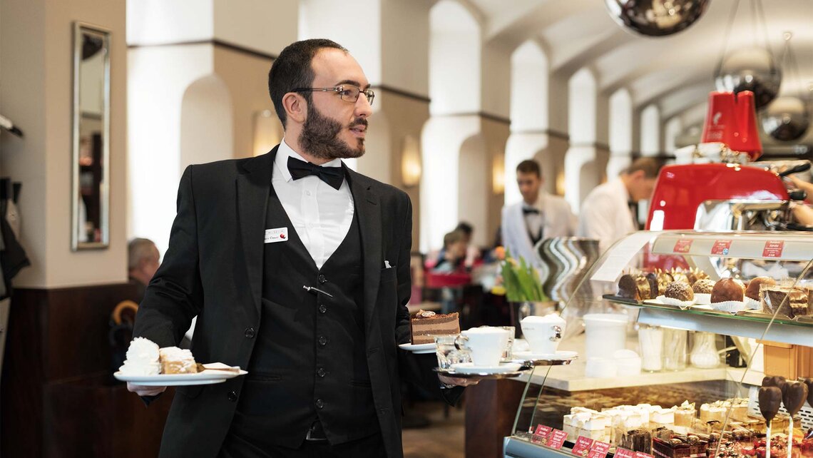 95 名全职员工保证各项工作顺利进行。要管理这样间餐厅必须深知传统文化和客人的各类需求。在妻子和家人的协助下,Querfeldt 在维也纳经营九家咖啡馆,包括著名的Café博物馆。每天,350 名员工尽最大的努力,发挥最好的状态。