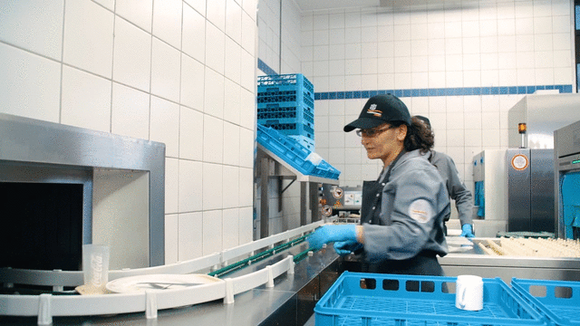 由于食堂中采用了 MEIKO 清洗解决方案,数分钟内即可搞定 200 个食堂托盘,再也没有了托盘拥堵的烦恼。由于减少了水和化学制品的消耗,工作变得轻松,同时也降低了成本。客人、工作人员和食堂经理,每个人的脸上都不知不觉地洋溢着笑容!