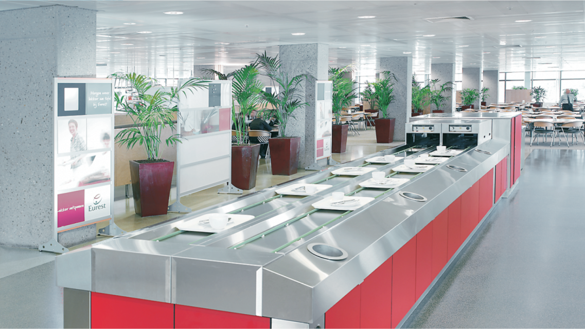 针对餐具回收高峰,迈科餐具传送系统能有效解决就餐高峰时餐具回收问题。学生及教职工在用餐结束后只需把餐盘放置在传送带上,餐具即可平稳地回收到洗碗间内,不会造成餐具堆积和食物垃圾堆积,也无需排队,在提升食堂卫生环境的同时,大大提升了就餐体验。此外,传送带亦可以配置垃圾投放口,便于就餐者投放可回收物品,进而提升清洗效率。