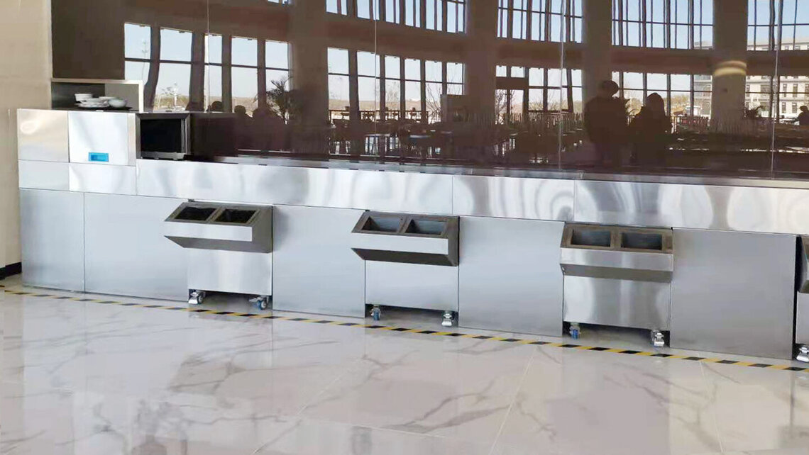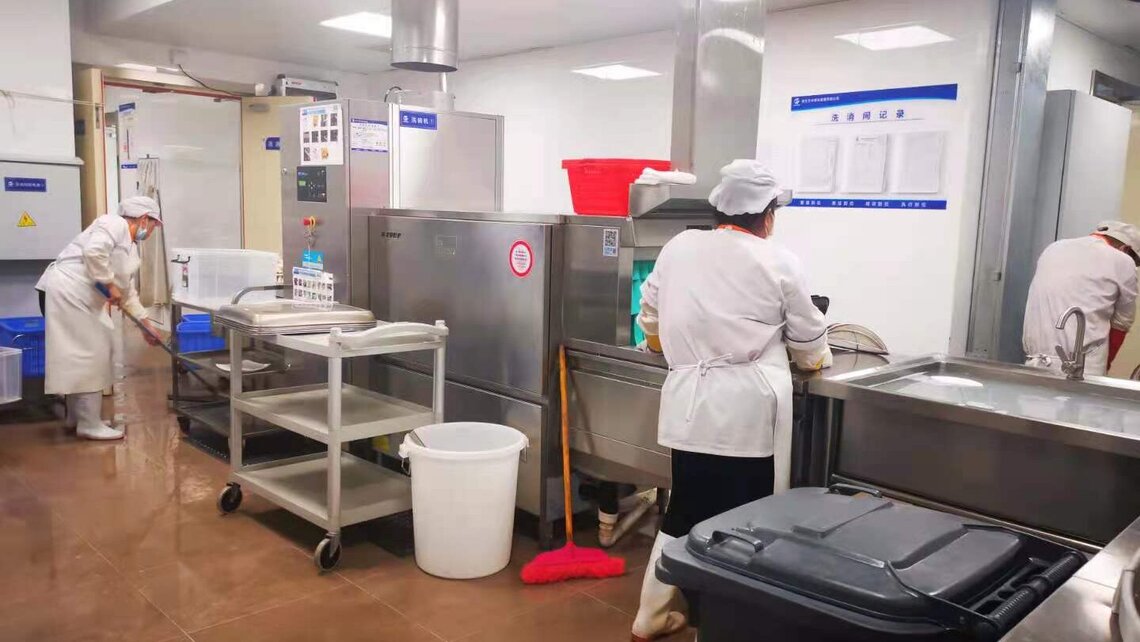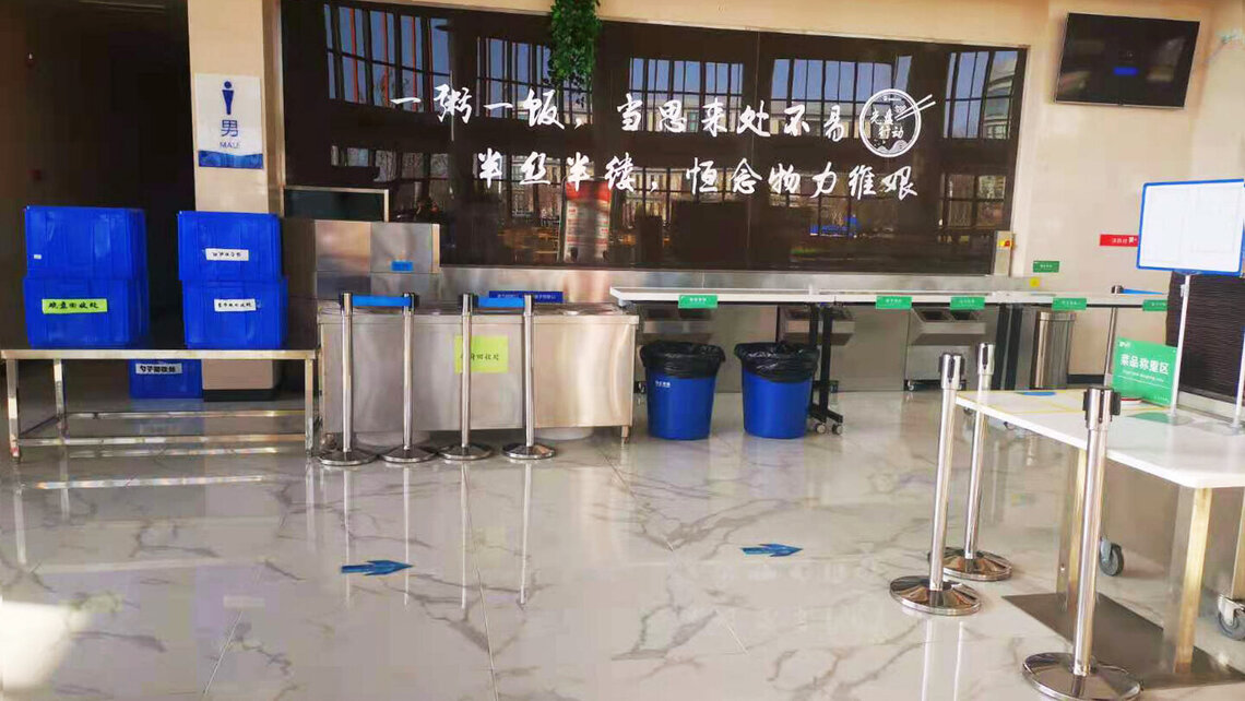 经过对该企业员工食堂就餐人数、餐具周转率等因素的综合评估,迈科为其配置‘餐具传送系统+洗碗机’的清洗解决方案,餐具回收到洗碗间后进行及时清洗消毒,保持操作间、厨房和洗碗间的卫生环境。