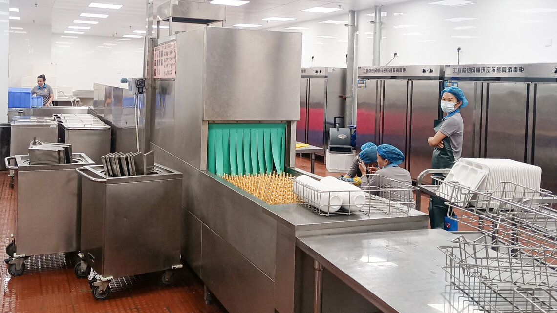在海花岛的核心地带,有一处格外吸引目光的牡丹花造型建筑群,那便是海花岛国际会议中心。总建筑面积约10万平方米,设有108间不同规格的多功能会议室,其中5600平方米的大会堂可容纳5500人,还有可以承办2000人的大型国际宴会厅。在这个高规格的会议中心,引入了迈科清洗技术,为各种不同规模的会议宴会、活动演出提供可靠的餐具清洗,以满足高标准的会议服务。