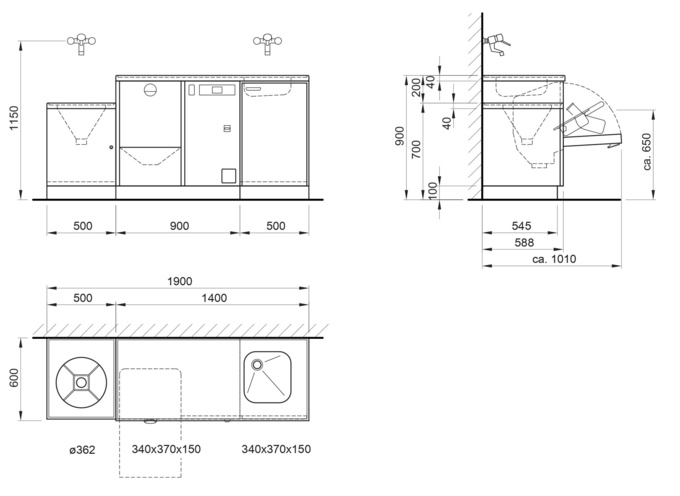 这是一种能够发挥最大作用的微型不锈钢配套组合:这种便盆清洗消毒机可嵌装在定制化组装的不锈钢配套组合中。在储存台面、卫生污水池、洗手盆以及必要时组装的配套柜子的配合下,形成一个功能强大的整体,可创造更好的卫生条件,将其紧凑型结构发挥至极致。这种系统为创造卫生条件提供辅助作用,避免了可引起医院感染的危险病菌。只需安放妥当,连接后即可使用。这种带有 TOPIC 便盆清洗消毒机的不锈钢配套组合也可以进行事后改装,例如添加一个底柜、增加一些操作台面、一个大洗手槽以及附装可摆放便盆、尿壶、肾形盘或儿童坐便器的置物架。