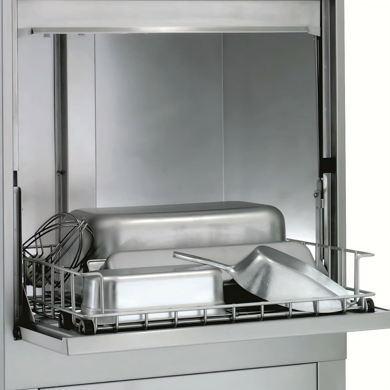 UPster PF 600 器皿清洗机旨在解决洗碗间最棘手的工作。超⼤的清洗室,可容纳各种尺⼨的清洗物,如托盘、周转箱、锅、瓢、煎锅等厨房⽤品。