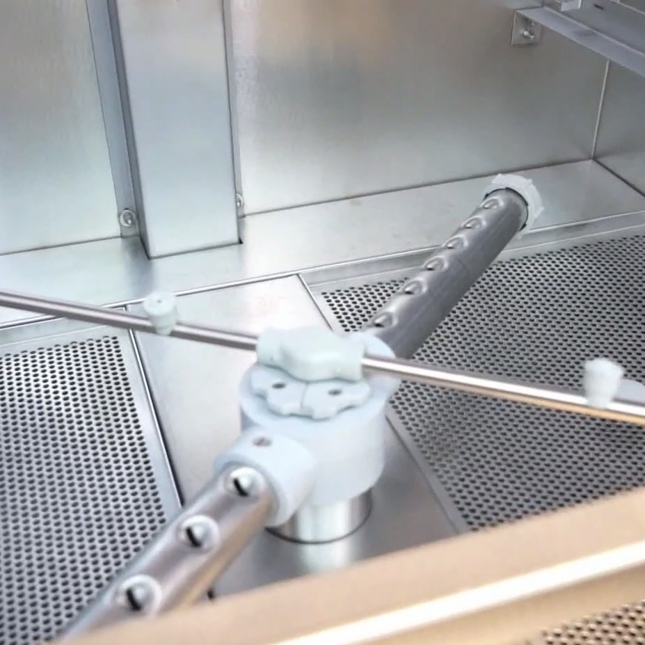 强大的上下旋转式不锈钢清洗和漂洗系统,主洗水泵功率高达2千瓦,具有强力洗涤功能,全面洗涤器皿的每个部分,洗涤效果更显著。